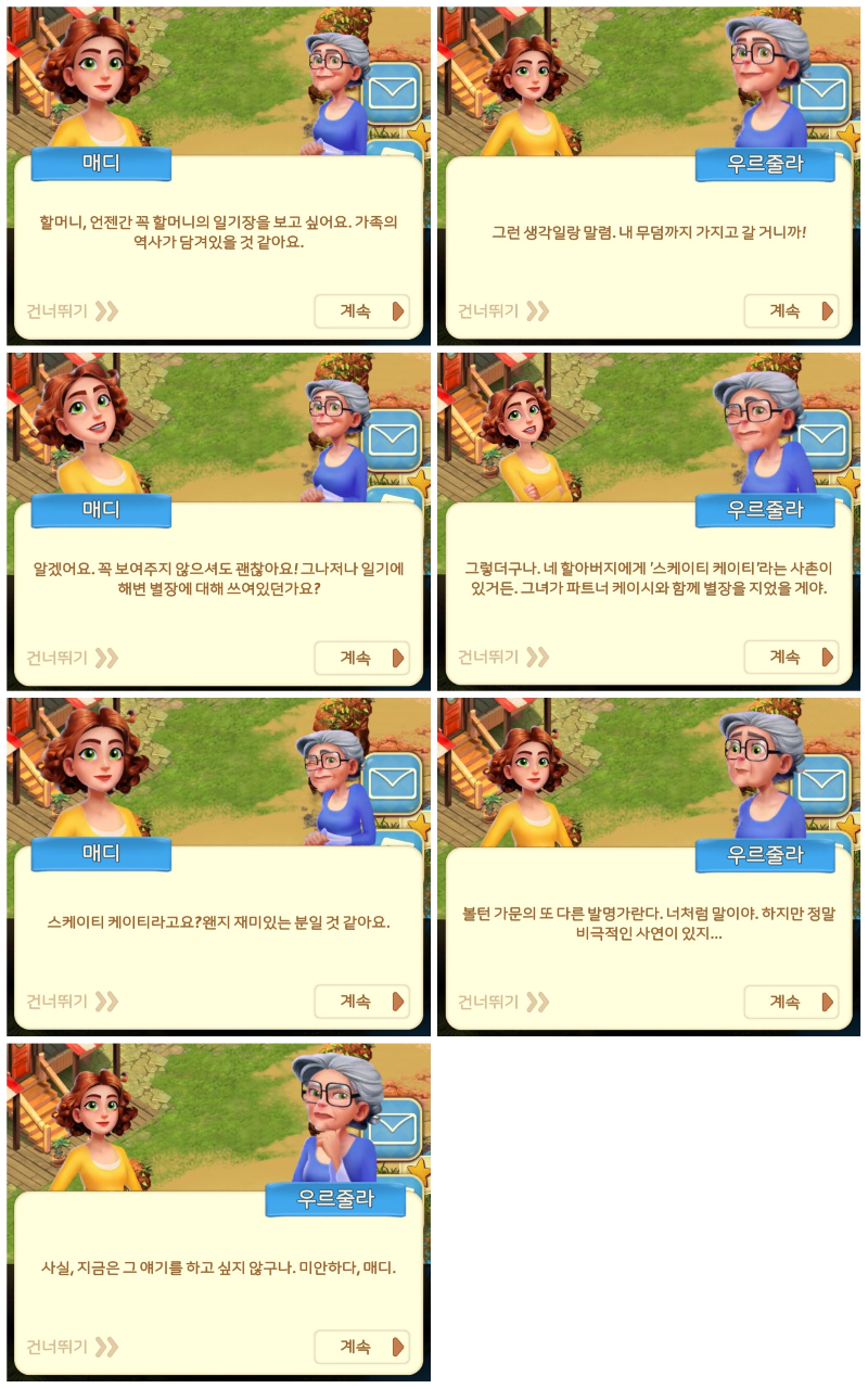 일단 해변 별장 들어가는 길목을 또 치워봅니다. 웃자란 관목을 제거하면 매디와 할머니의 대화 등장!